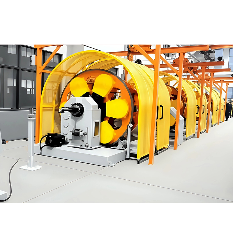 R : Le Planetary Stranding Machine employs a planetary motion architecture where each payoff unit revolves around the central axis while maintaining its own rotation, achieving precise stranding angle control and stress balance. Traditional equipment typically uses a single rotation method, making it difficult to completely eliminate internal torque.